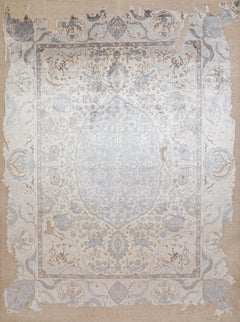 Fusion remarquable de la complexité classique et de l'expression contemporaine, ce tapis fait main présente un médaillon central très détaillé sur un fond abstrait à la texture brute...