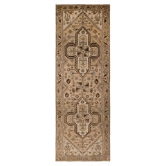 Tapis persan tissé à la main (a) Gallery en brun atténué et sable 4x15 ft