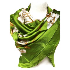 LARGE SCARF EN SOIE DE CHANEL, 130 cm x 130 cm, vert avec FLEURS DE CHANEL