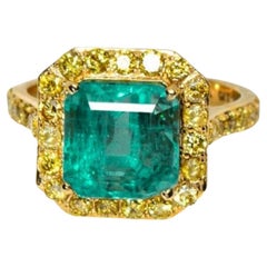 Diamant, Émeraude, Diamant jaune, Or, Or 18 carats, Or jaune