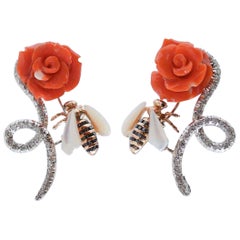 Corail, Diamant, Saphir, Or 14 carats, Or rose, Argent