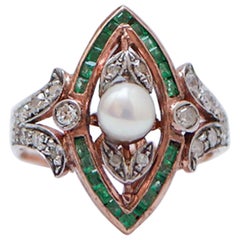 Perle, Émeraude, Diamant, Argent, Or rose, Or 9 carats