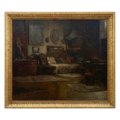 Endre Komaromi-Kacz (1880-1969) Peinture à l'huile originale Intérieur d'appartement