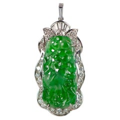 Pendentif en or blanc 18 carats avec diamant, certifié GIA, en jade naturel sculpté