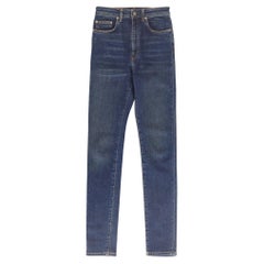 Une incroyable paire de jeans bleu denim de Dolce & Gabbana. Ils sont de taille moyenne et se ferment par un bouton métallique au-dessus de la fermeture à glissière avant et des poc...