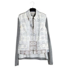 GALLIANO - Cardigan multicolore en crochet avec éléments en patchwork. L'un des fonds de manche présente une ouverture. Composition et labels de taille manquants, il convient à un 38...