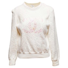 Ce sweat-shirt Chanel 100% authentique en jersey de coton crème (100%) est orné de paillettes et de perles de cuir noir pour une allure décontractée. ...