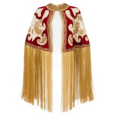 En provenance de France, entièrement doublé en satin de coton doré. Cape longue catholique victorienne en brocart de soie et de coton doré avec broderie de franges véritables Prése...