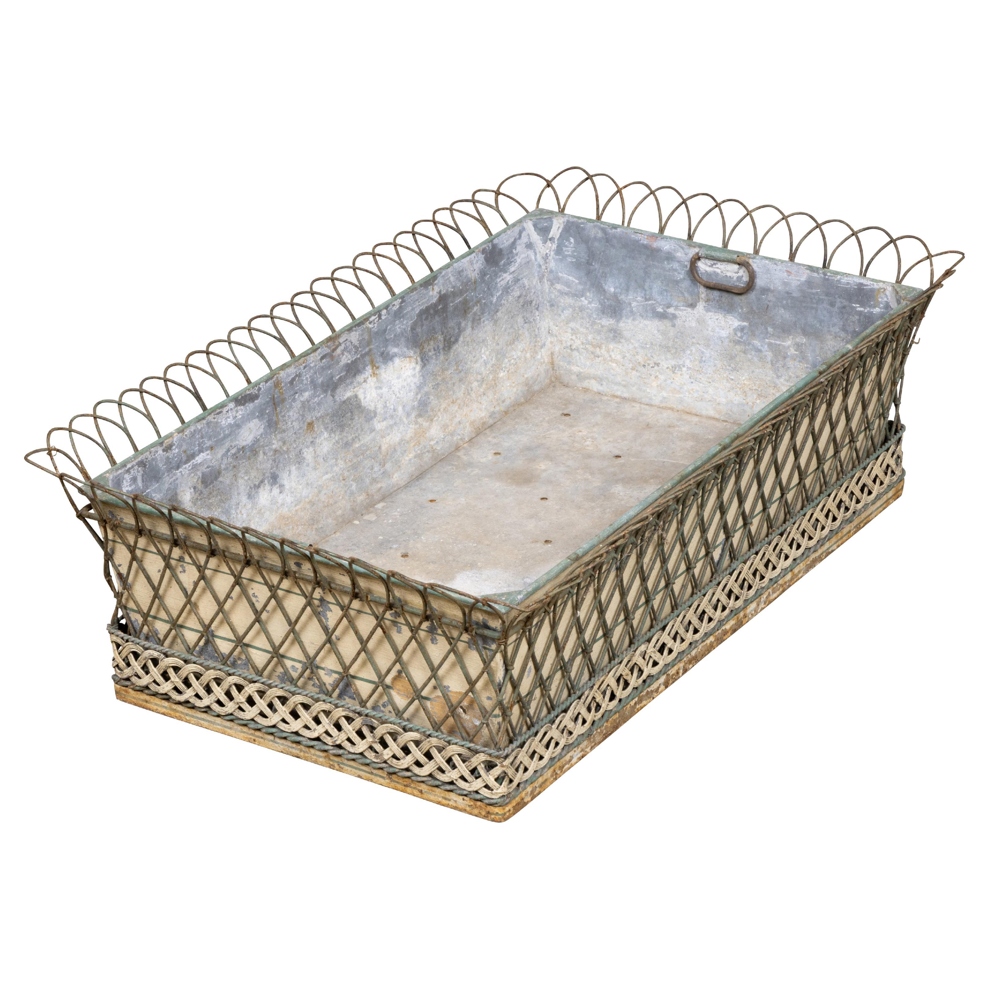 Jardinière en tôle française du 19ème siècle avec des détails décoratifs en fil de fer et tressés