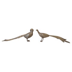 Paire de petites figurines en laiton Oiseaux décoratifs en laiton, France, 1950
