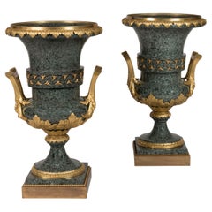 Superbe paire d'urnes de table ou de cheminée en porcelaine émaillée de Sèvres et en bronze doré, de forme traditionnelle, d'une qualité exceptionnelle et de proportions moyennes.   ...