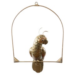 Paire de petits oiseaux décoratifs en laiton, finement travaillés, datant des années 1950 et d'origine française. Chaque oiseau présente un corps stylisé recouvert d'un design ponctu...