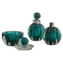 Vase unique en verre Pulegoso de Murano du 20e siècle, réalisé par Napoleone Martinuzzi au tout début de la période, vers 1920. Cet impressionnant vase vert/bleu en verre de Murano (...
