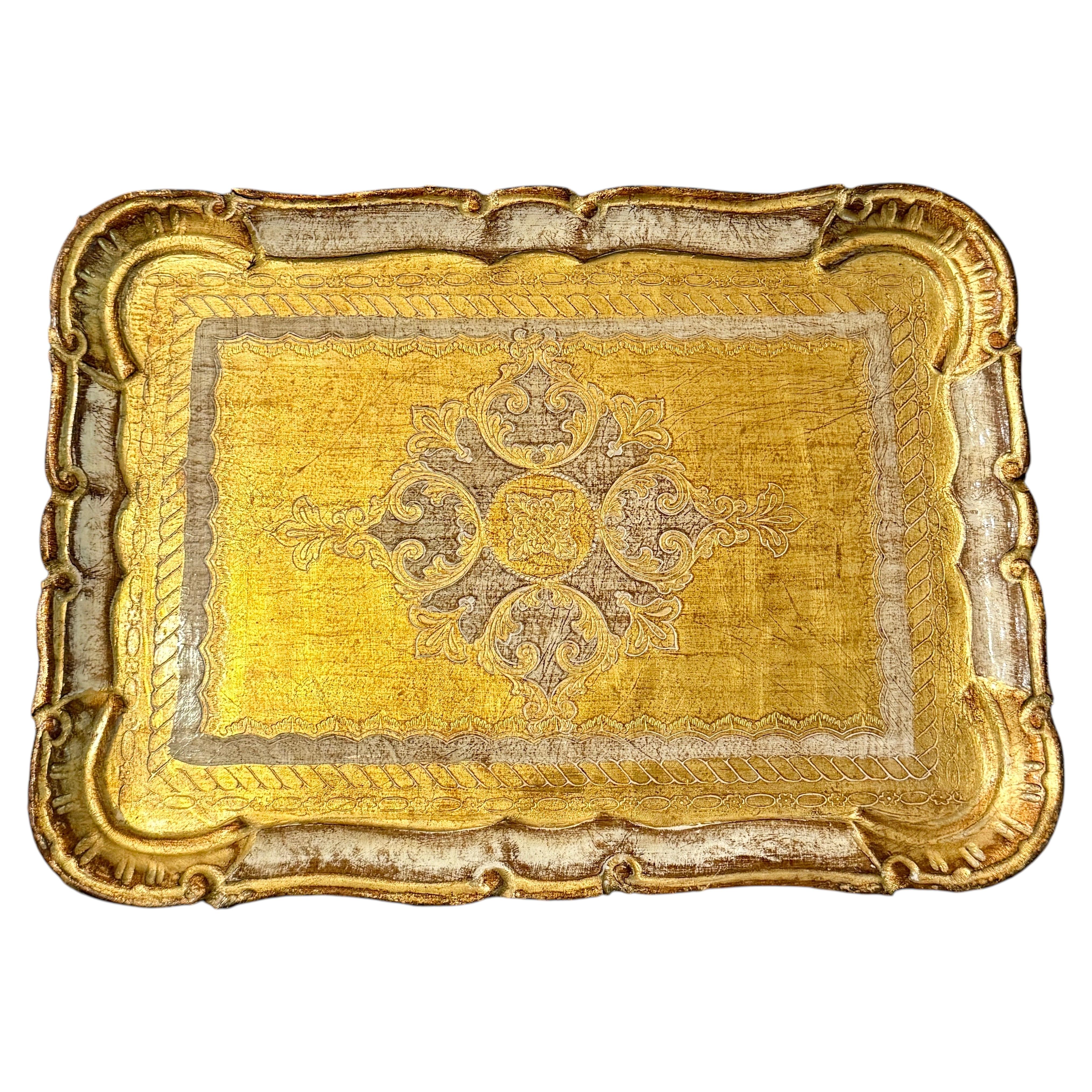 Grand plateau italien en bois doré Florentine