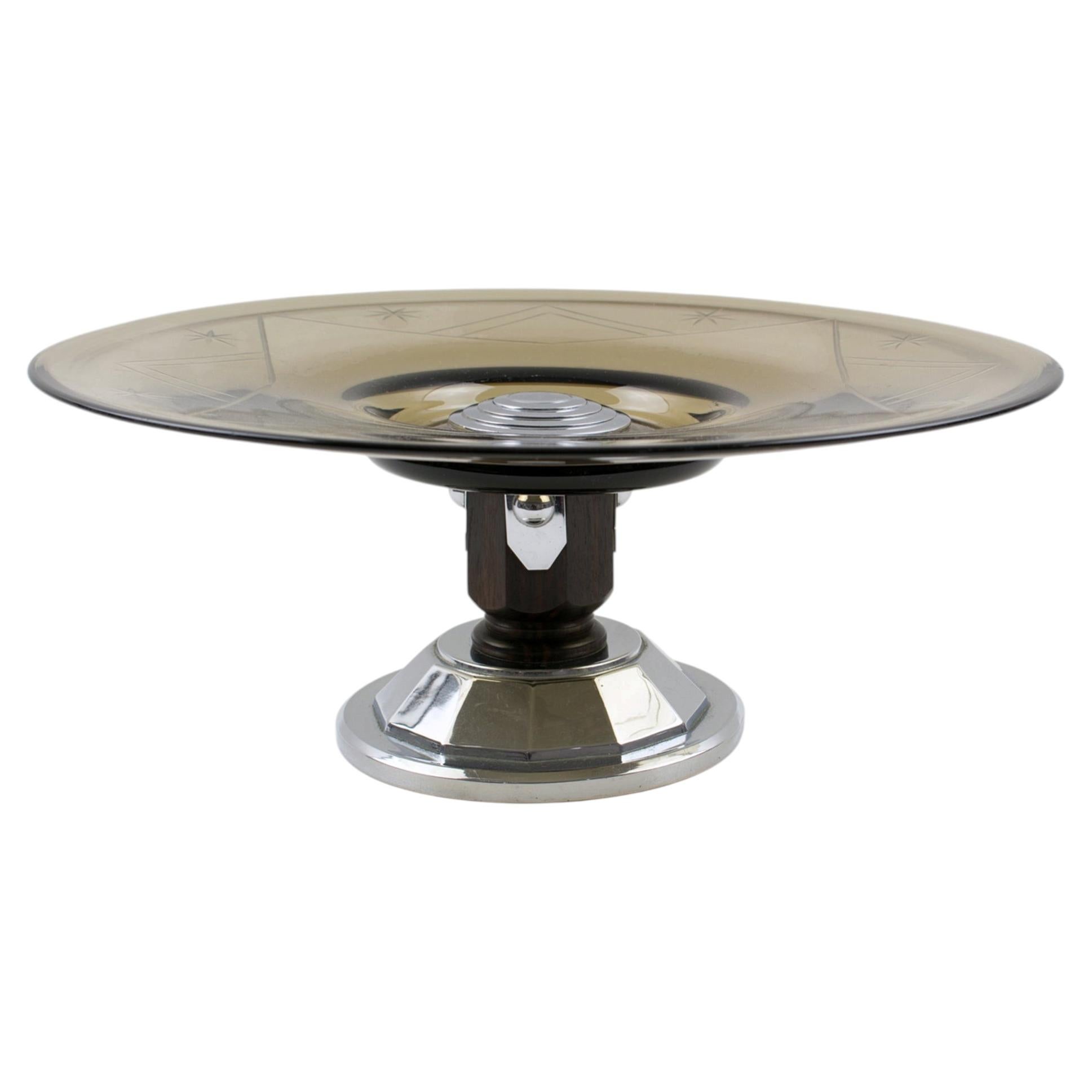 Centre de table Art Déco en Wood Wood et A Silver par Orbrille, circa 1930