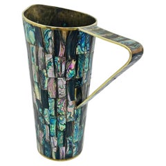 Taxco - Pichet en argent mexicain avec toucan en malachite dans le style de Los Castillo