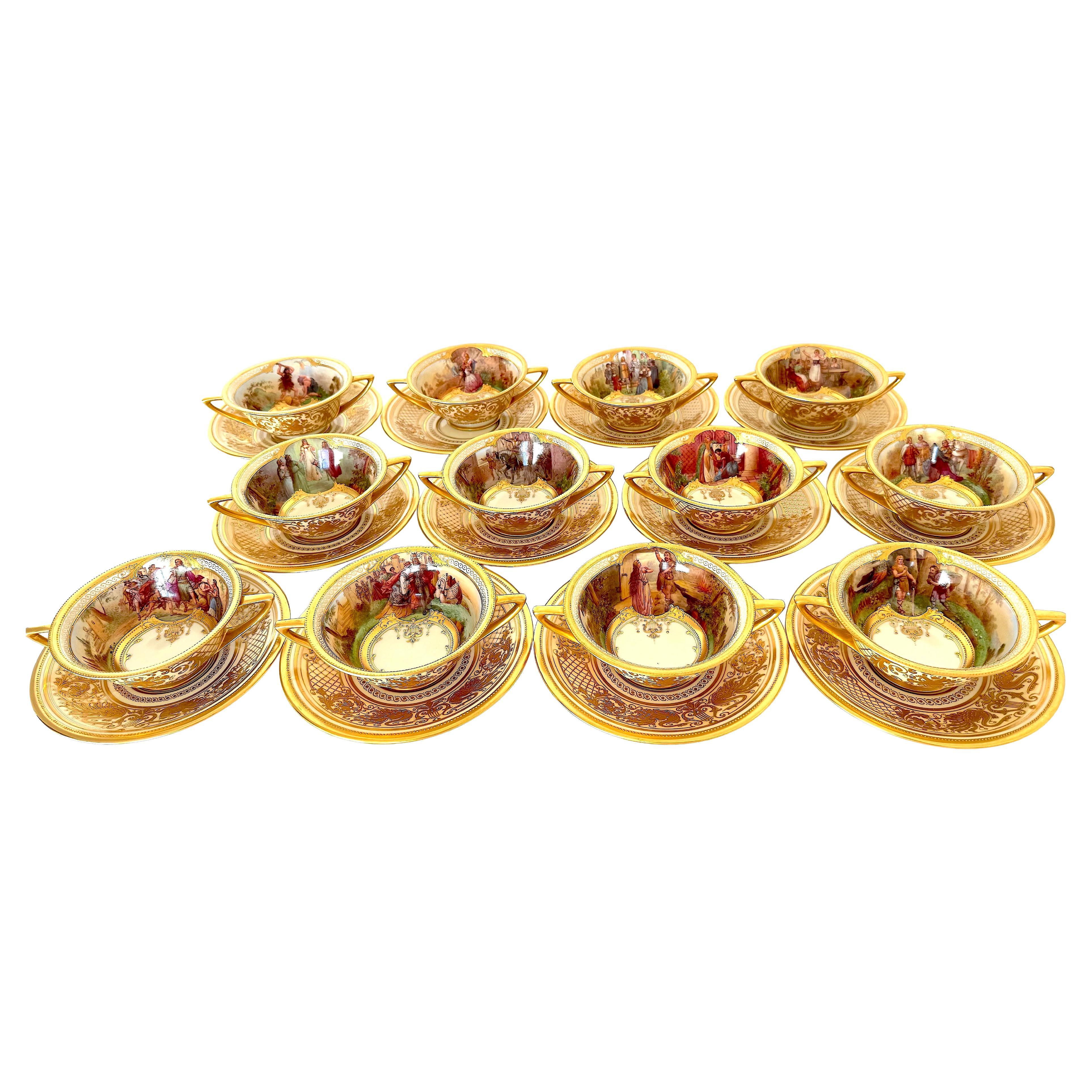 Début du 20ème siècle Allemand Néo-baroque Vaisselle peinte, céramique, argent et verre