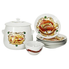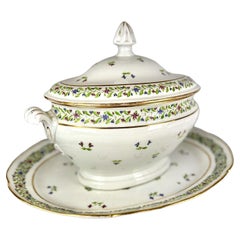 Magnifique soupière à couvercle en pierre de fer blanche, vers 1900. Pas de marque de fabricant. Cette belle soupière est ornée d'un fleuron décoratif et de jolies poignées ornées. I...