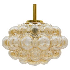 Plafonnier en verre à bulles de l'ère spatiale par Helena Tynell pour Limburg, Allemagne, années 1970. Structure en métal chromé doré et diffuseur en verre ambré/champagne en forme d...