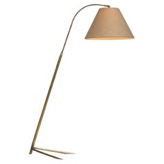 Expert en restauration - Lampadaire moderne danois en teck sculpté avec abat-jour en cône de lin