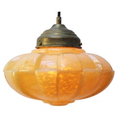 Suspension Art Nouveau en laiton et verre pressé rose, années 1920