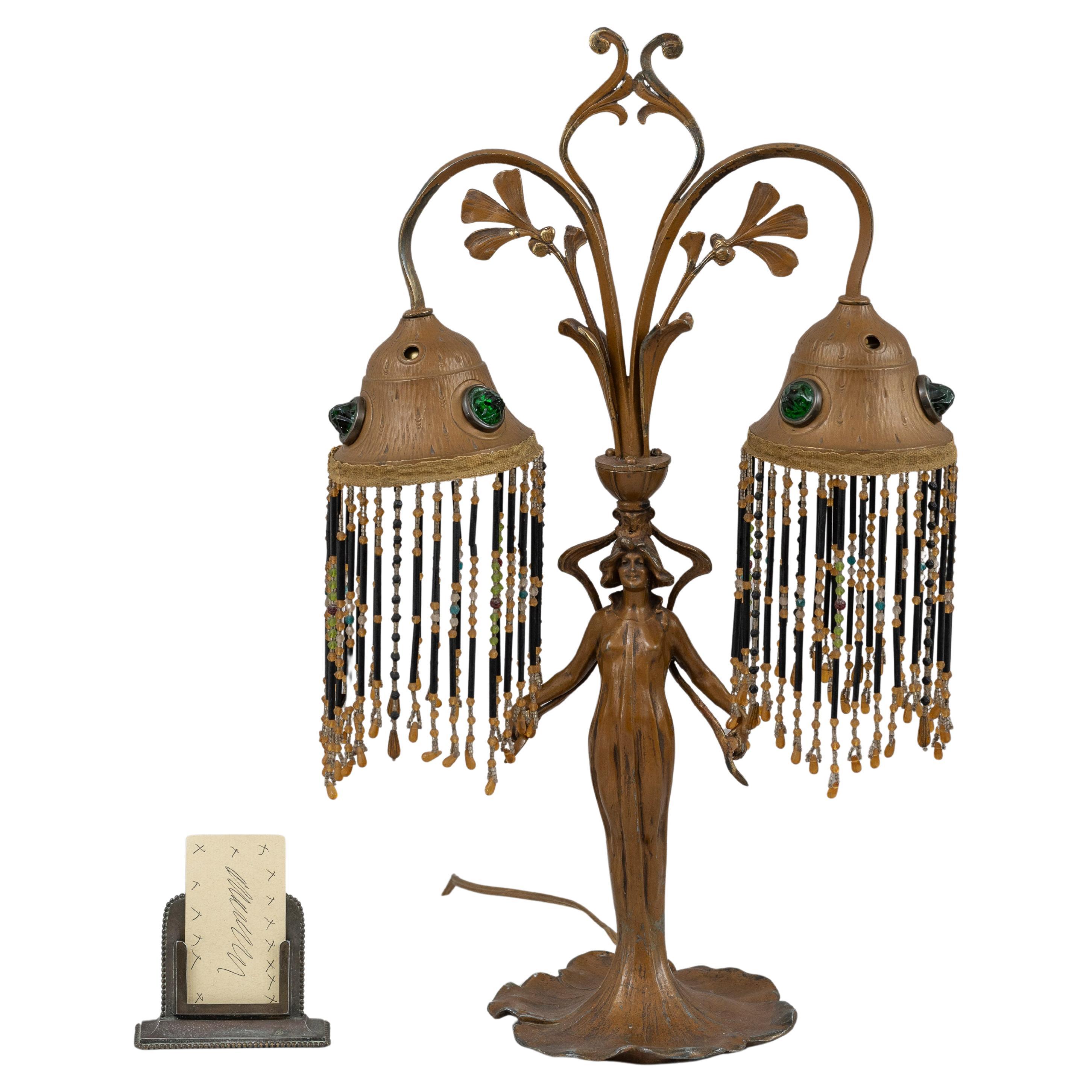 Lampe de table Boudoir d'époque Arts & Crafts Heintz Metal Arts Designed Bronze Floral