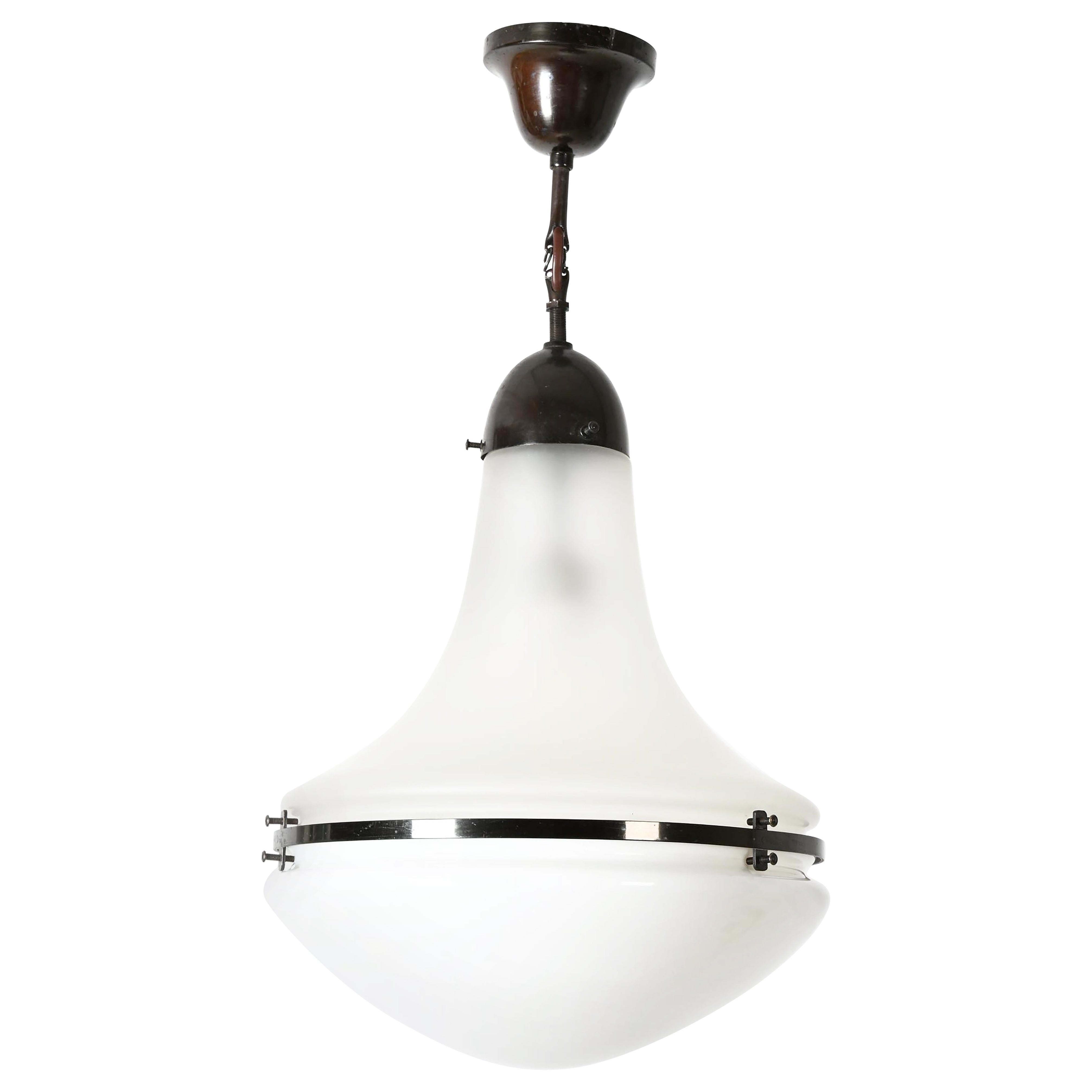 Lustre Art Déco Peter Behrens, en verre opale et nickel, Allemagne, 1910