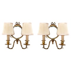 Paire de candélabres français anciens de style Louis XV en bronze doré du 19ème siècle
