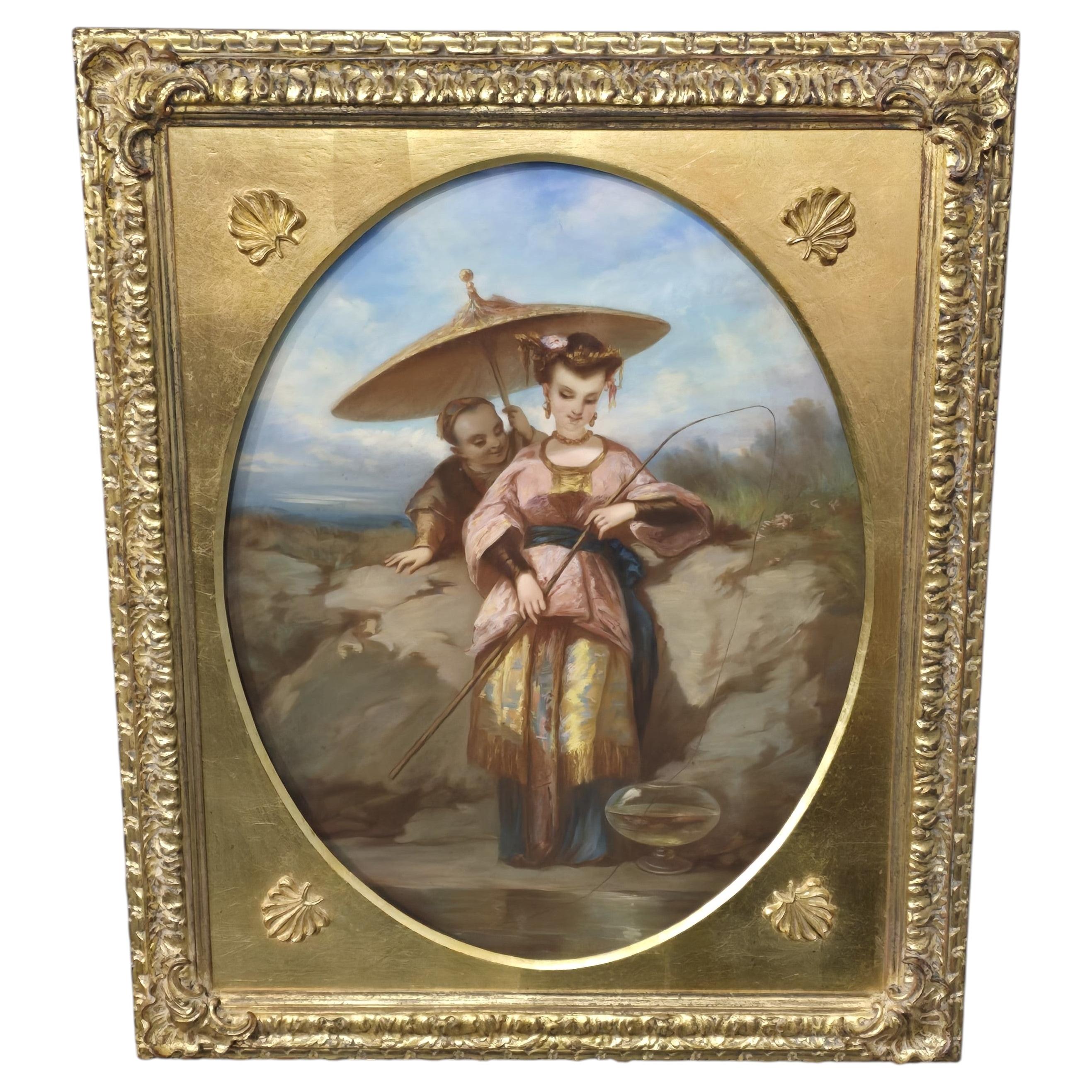 Portrait raffiné au pastel dans un cadre en bois sculpté et doré. Le tableau représente une jeune fille portant des vêtements d'époque et une coiffure typique du XVIIIe siècle. Ses c...