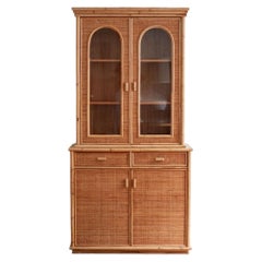 Un ensemble de dix chaises de salle à manger en bambou avec des sièges en jonc. Les dossiers en fuseau carré sont complétés par des panneaux de rotin tressé au niveau de la barre de ...