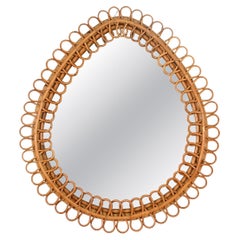 Miroir mural ovale en rotin de la Riviera italienne Franco Albini, Loop Design, années 1950