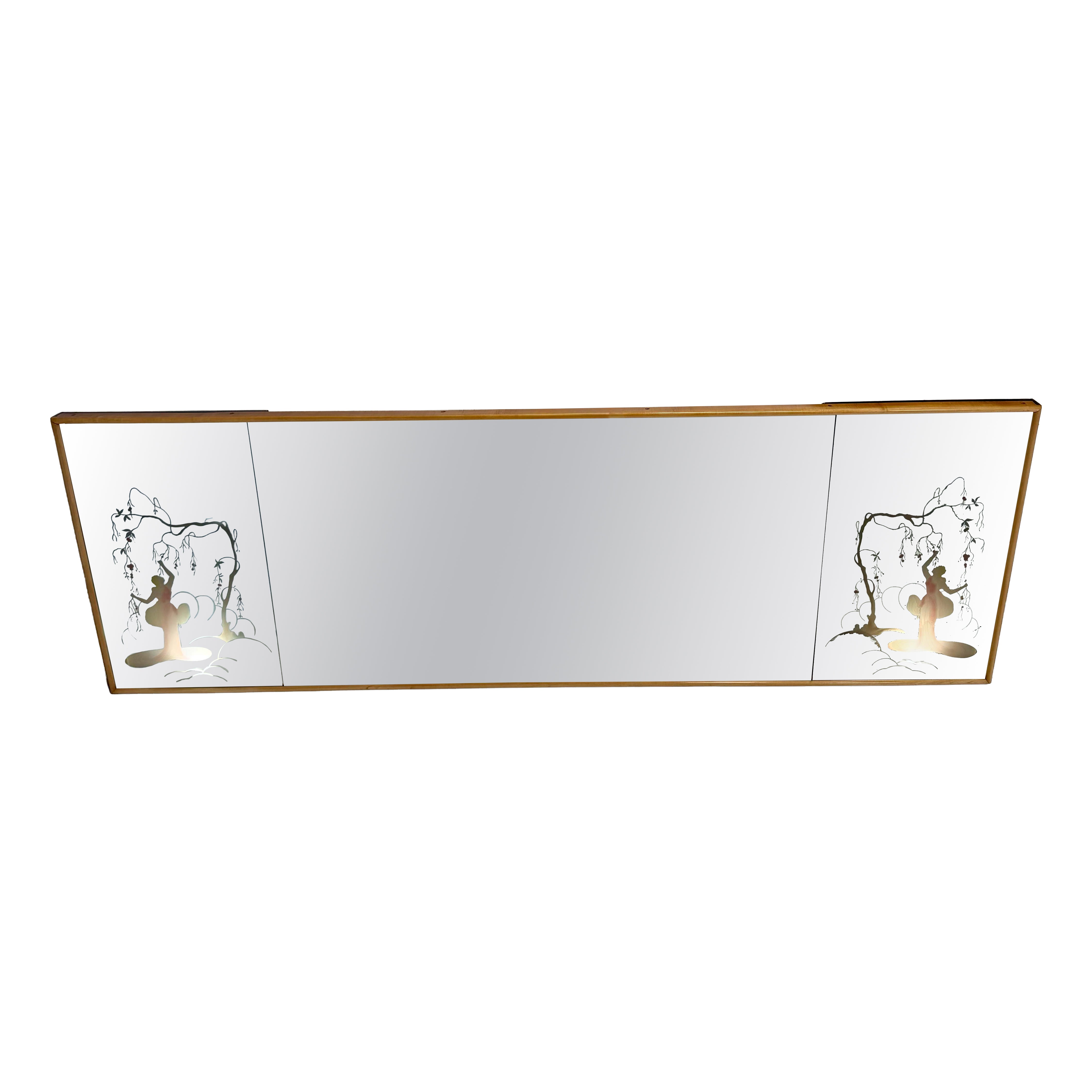 Miroir de grande taille en bois d'érable avec d'élégantes sculptures, conçu par Osvaldo Borsani pour Arredamenti Borsani Varedo ; avec l'étiquette du fabricant apposée au dos. Ital...