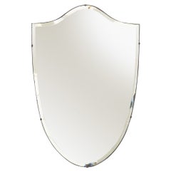 Miroir mural en laiton en forme de bouclier conçu et fabriqué en Italie dans les années 60 dans le style de Giò Ponti en bon état, laiton en patine d'origine. Ce miroir mural bouclie...