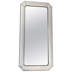Un élégant miroir en verre de Murano, fabriqué à la main à Venise, en Italie, datant des années 1960 ou avant. Ce miroir en forme de cartouche, au bord incurvé, est richement décoré ...