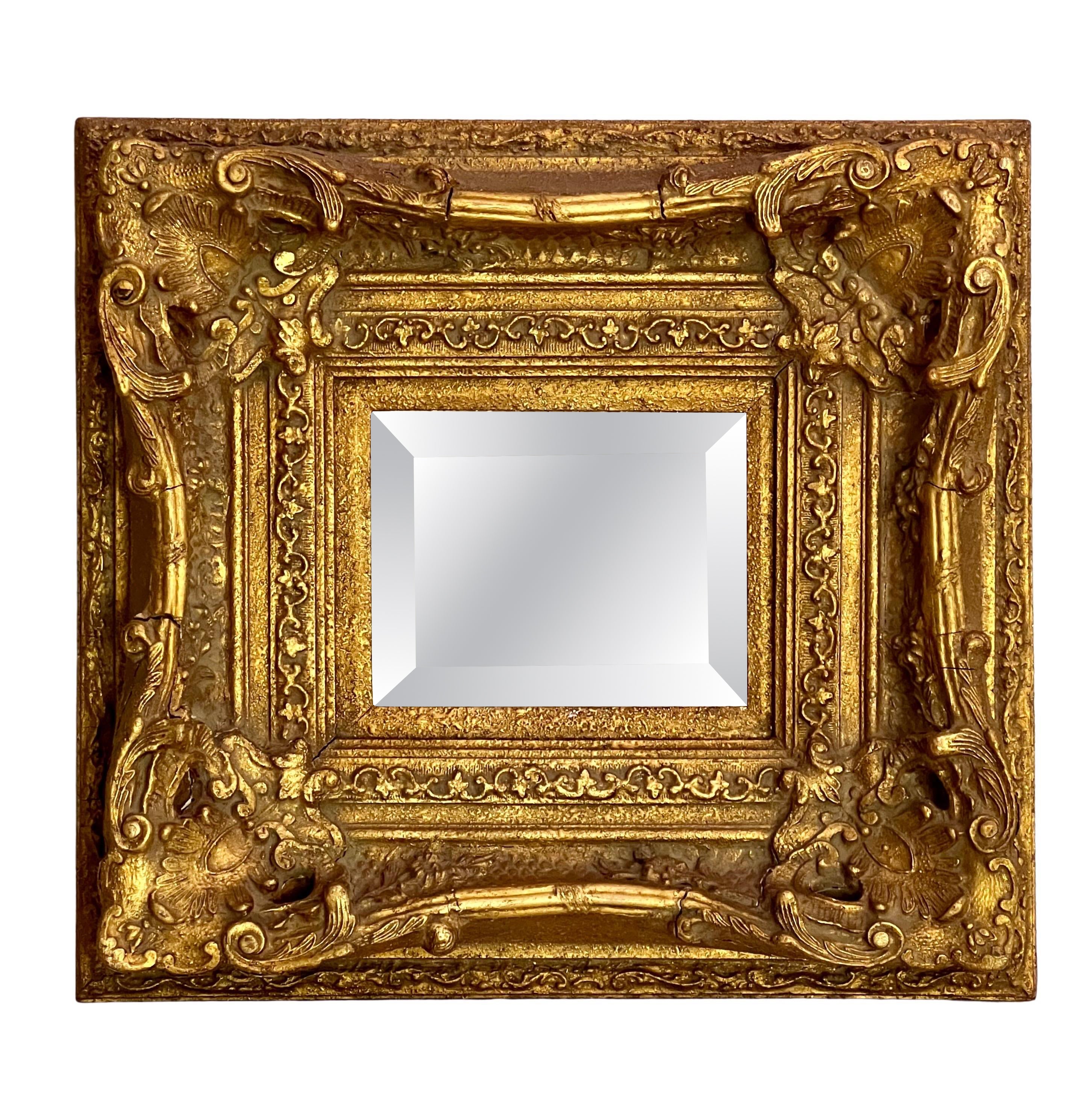 Miroir biseauté vintage en bois sculpté fleur de lotus