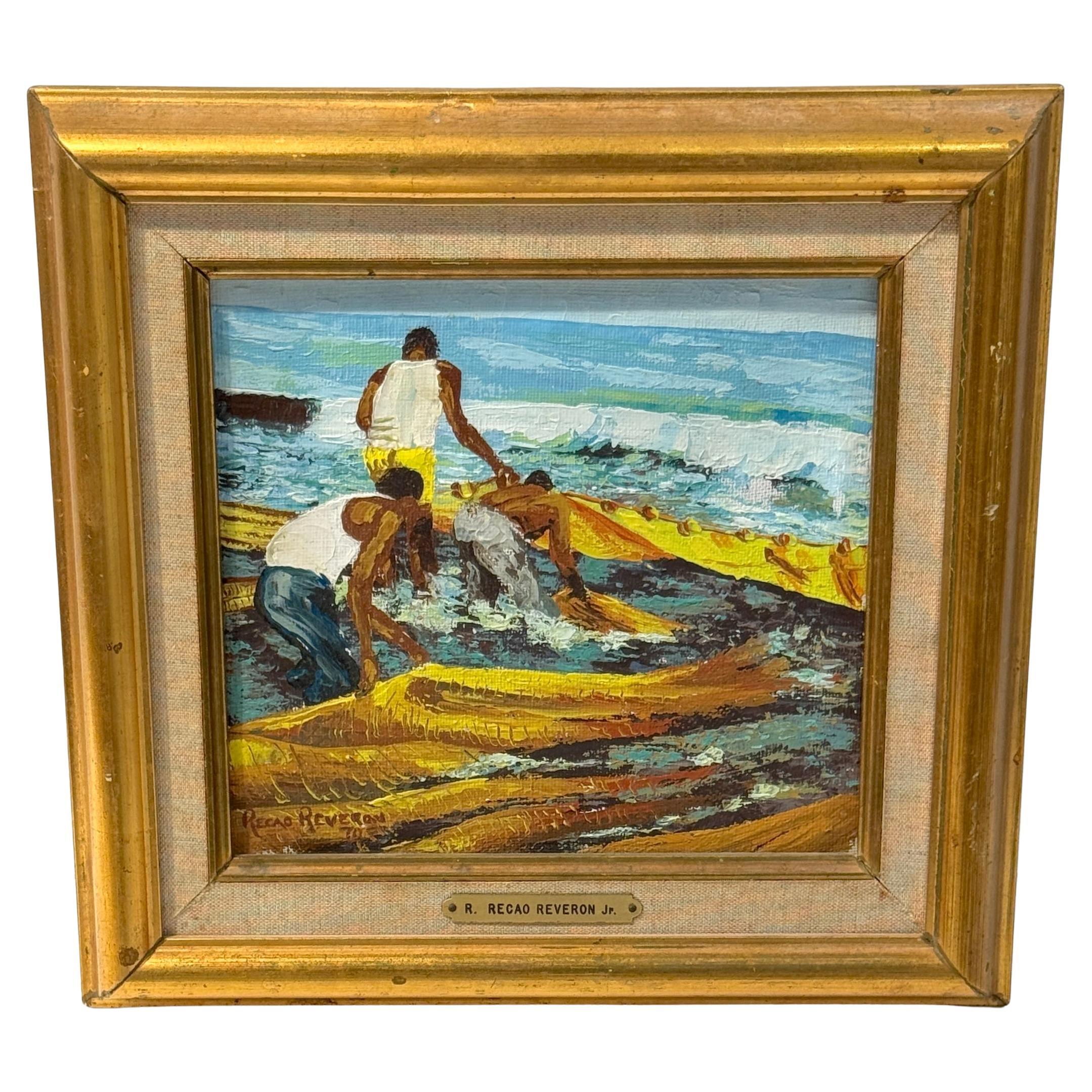 R. Recao Reverón Jr. The Fishermen' 1970 - Scène de plage et de mer sur la côte