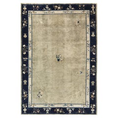 Cet exquis tapis chinois ancien de style Savonnerie présente une fusion étonnante de l'artisanat oriental et du design néoclassique français du XVIIIe siècle. Doté d'un riche champ b...