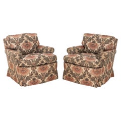 Vladimir Kagan - Paire de chaises longues 'Barrel' en tissu abstrait multicolore