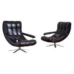 Rare ensemble de deux chaises longues en forme de cygne Arne Jacobsen de Fritz Hansen, fabriquées au Danemark. Toutes les chaises pivotantes originales avec des bases rares alternées...