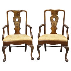 Paire de fauteuils Art Déco en noyer avec accoudoirs ouverts à volutes