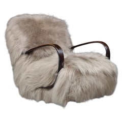 Byogens Lassen (attr.) Fauteuil à dossier haut en peau de mouton miel, années 1940