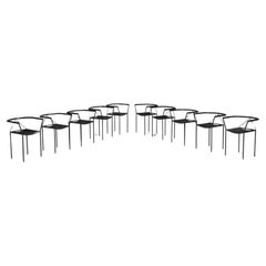 Un magnifique et sculptural ensemble de 10 chaises de salle à manger en chêne, conçu par Henning (Henry) Kjærnulf pour Nyrup Møbelfabrik au Danemark dans les années 1960. Connues sou...