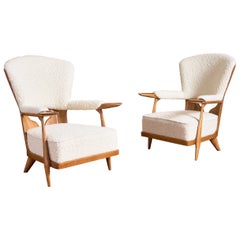 Paire de fauteuils danois Alfred Christensen des années 1940 à dossier bas et accoudoirs ouverts