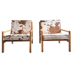 années 1970 Français Mid-Century Modern Vintage Sièges - Cuir de vache