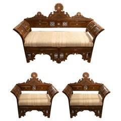 Ensemble de six chaises de salle à manger brutales sculptées à la main, fabriquées par Aquarius Enterprises dans les années 1970 en Afrique du Sud. Chaque chaise présente une constru...
