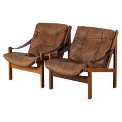 Chaises longues en cuir vintage des années 1970 par Elsa et Nordahl Solheim pour Rybo Rykken