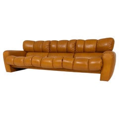 Un étonnant canapé trois places des années 1960 en cuir marron riche, produit par OPE Möbler, Suède. Cette pièce élégante illustre le design moderne Scandinavian, où l'artisanat raff...