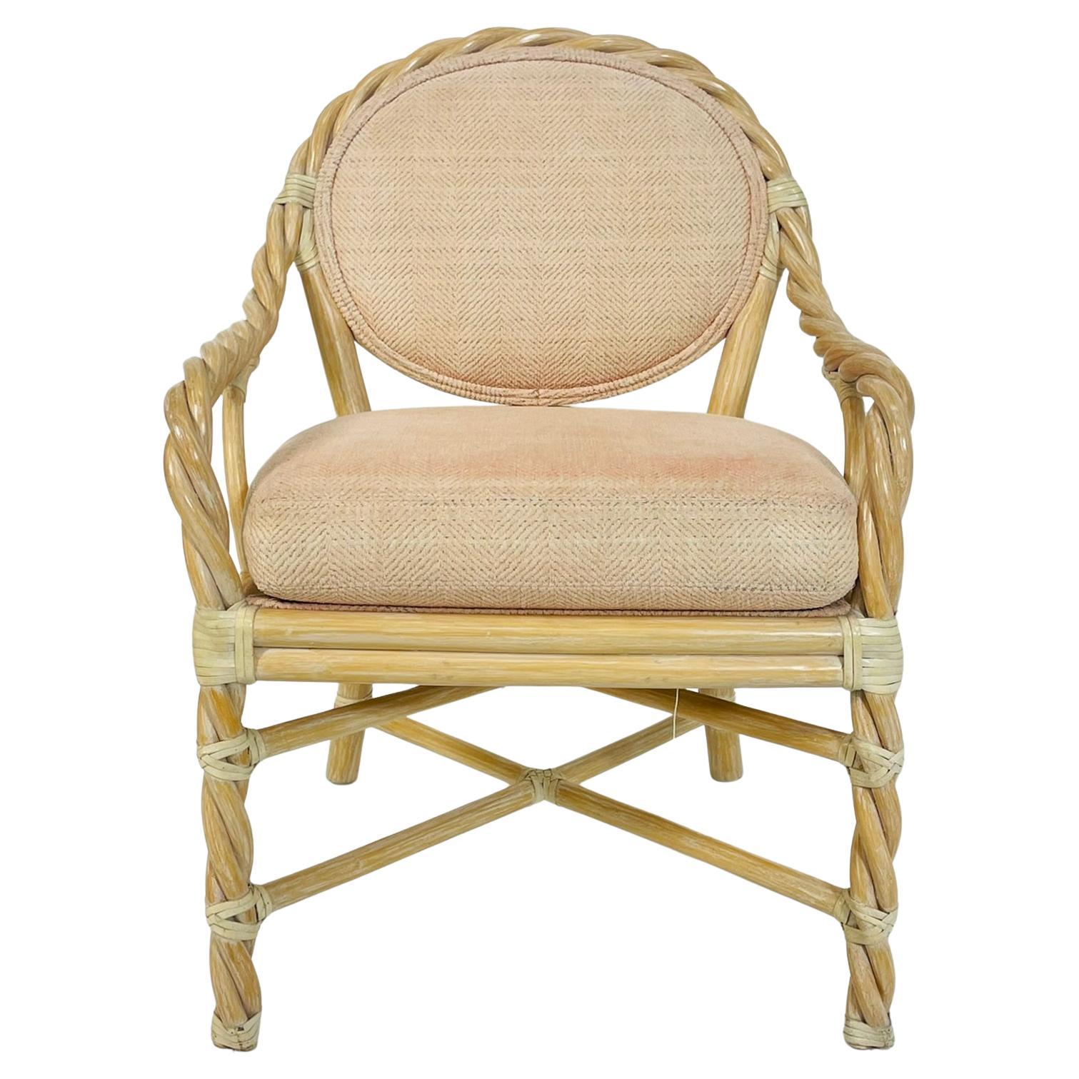 Fauteuil d'appoint vintage Boho Chic en rotin torsadé et bambou