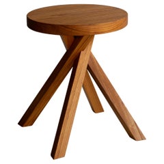 Ce tabouret à trois pieds est le modèle S31, conçu par Pierre Chapo en 1974. Il se compose d'une base à pieds croisés et d'une assise ronde, toutes deux fabriquées en bois d'orme mas...