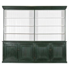 Grande bibliothèque française du XIXe siècle de style Louis Philippe, fabriquée à la main en pin, avec une rangée de quatre portes vitrées pour exposer des livres précieux, des objet...